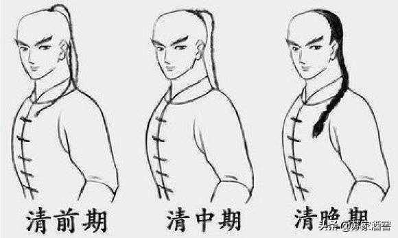 清前期,男子留的是金钱鼠尾辫,其他剃光,就留下后面小小一撮,像老鼠的尾巴,据说这一撮的大小还要以能穿过铜币的孔为标准。到了清中期,小辫稍微变粗,改称为“猪尾巴”。反而直到清朝末期,才开始慢慢出现我们现在清宫剧里常见的那种“莽尾辫”,也叫“阴阳头”。但影视剧为了美观,也选择把多尔衮、顺治等时期的造型变为了这种“阴阳头”。