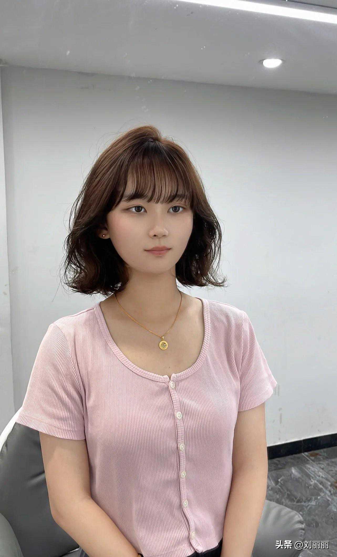 前面搭配一个齐眉的刘海,不仅可以很好地修饰额头和脸型,还能突出一双漂亮的大眼睛,可爱又时尚。
