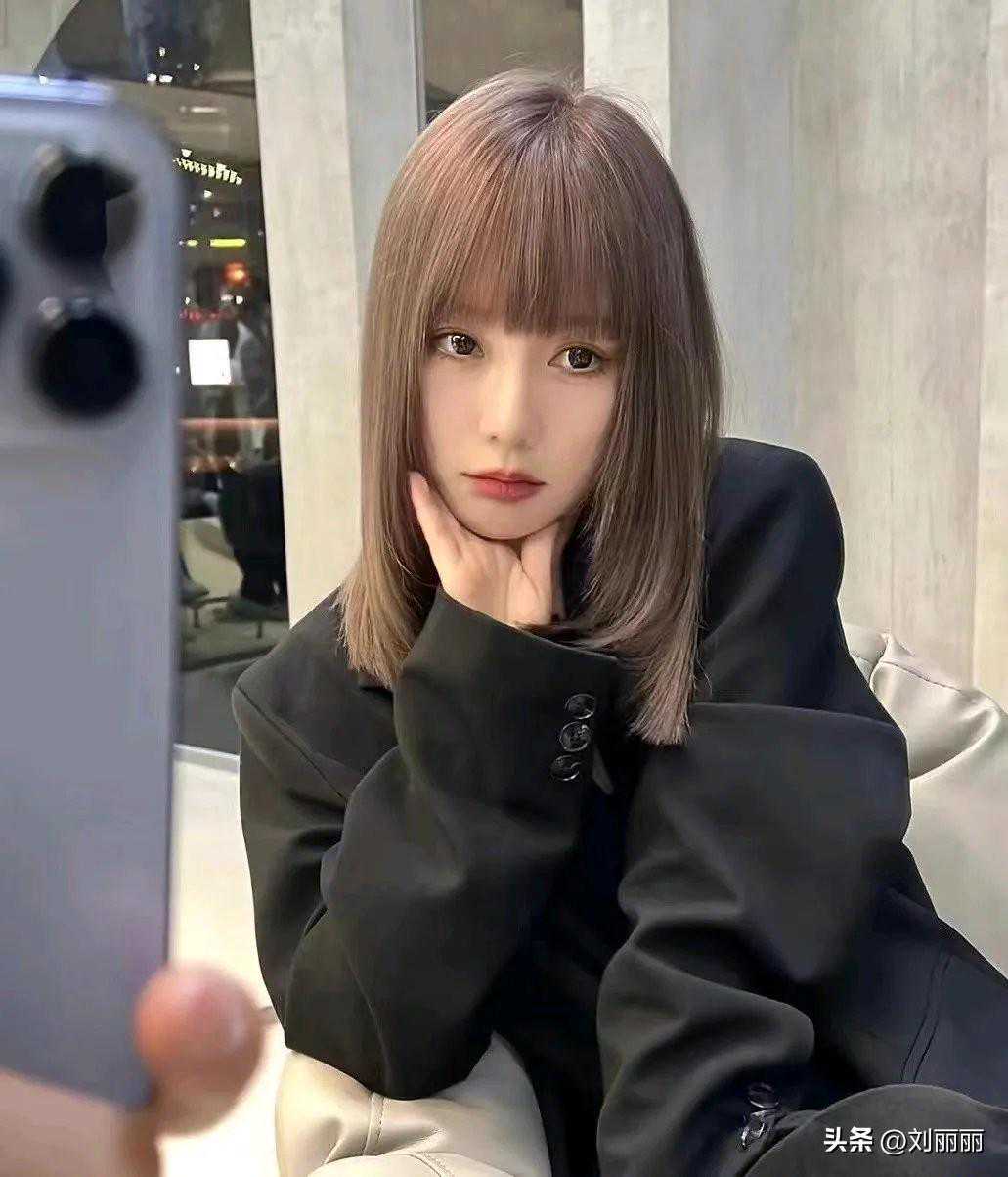 时尚的姐妹都特别钟爱锁骨发型,不长不短温柔还修颜,小姐姐配上一款亚麻灰发色,越看越时尚。