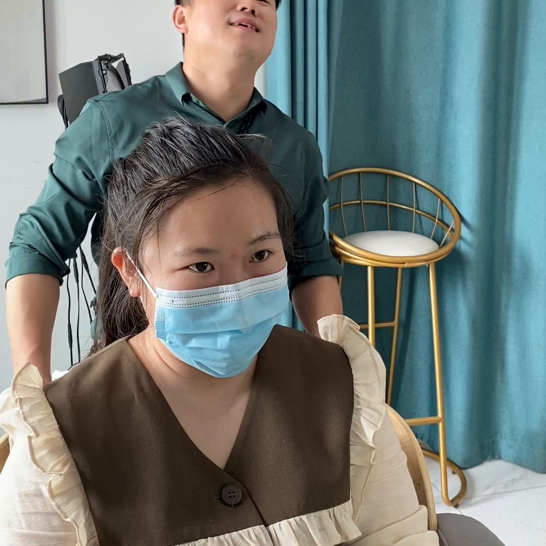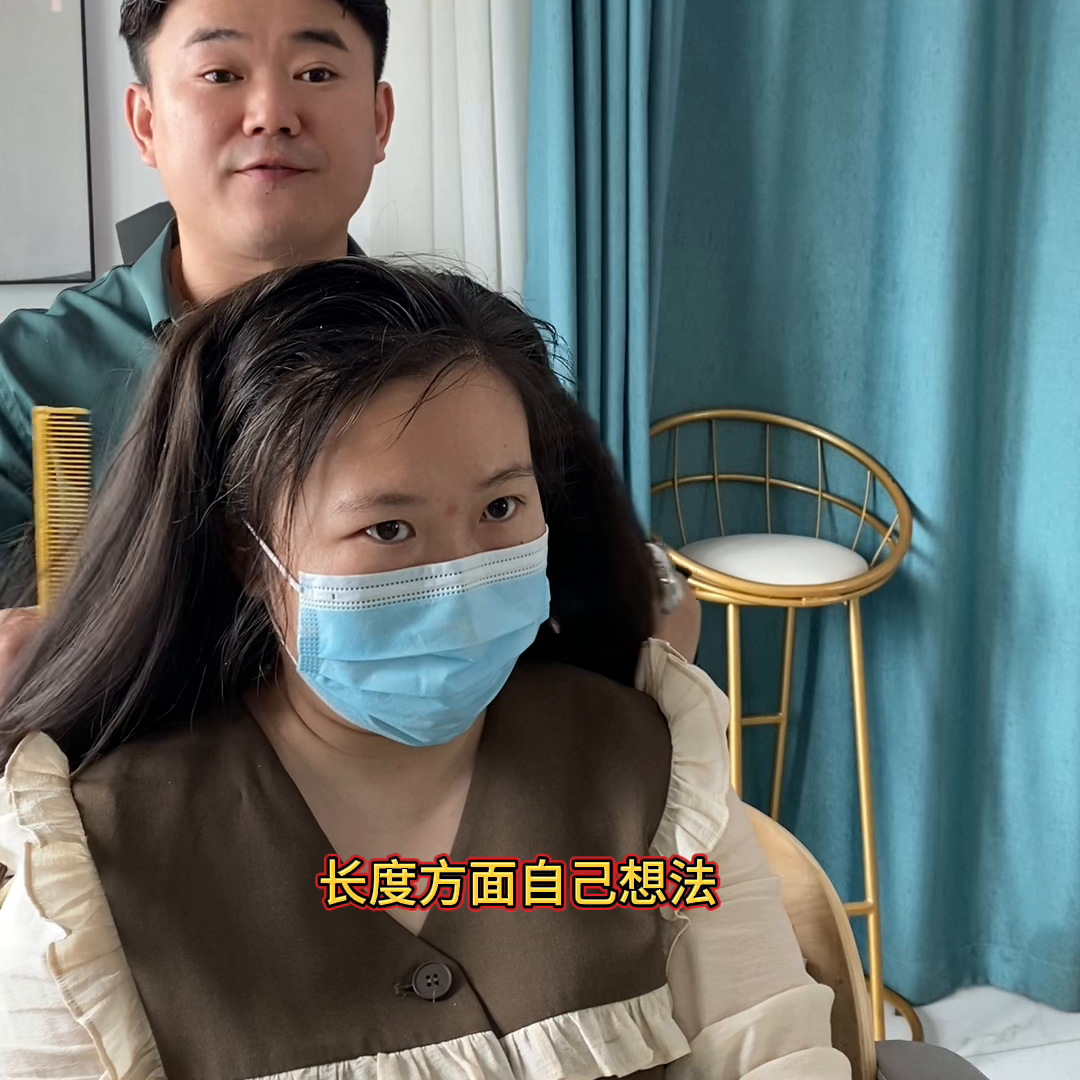 你这头发之前这几年都没做,还是什么样子?4年了。长度方面自己想法应该还是不能太短了,可以短一点,但是不能太短了。你不是说胖了。OK颜色要做吗?要做是吧,但是不要太太冷了。现在……不要冷冷的色调了,不要冷色调。你看你头发都有点棕色的你没看到,那就不做了,对我是觉得可以不用做的。你如果不要冷色调,那你就直接这个颜色,你看你颜色本来就有点颜色,很多人染就有点色,他都不是那种棕色,他都有点感觉有点灰,灰棕这种感觉,把型做好了就可以了,就可以了。