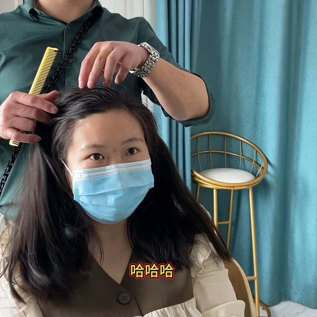 别说了,不敢见人了。让我看一下。冲洗我先帮你剪,等下他还没吃晚饭,我在老家,不敢做,太伤了,怕做不好是吧?不是做不好太伤头发了,是产品也是一个对产品。