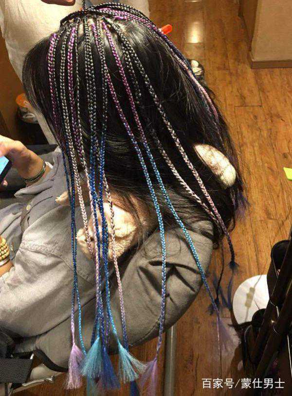 临时脏辫,从上面的图片可以清楚的看到辫子根部有捆扎的痕迹,因为都是拿现成的脏辫成品捆绑在头发上的,这种脏辫保持的时间很短,整体效果跟脏辫差不多。