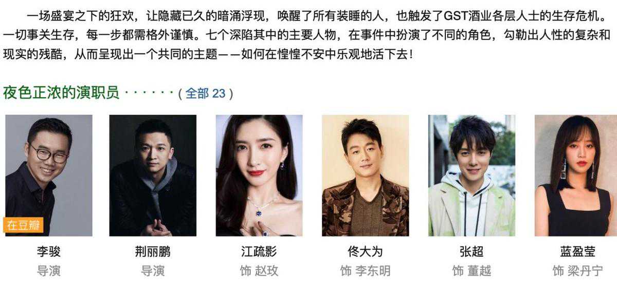 才刚刚杀青的《夜色正浓》就是这样一部作品。这部剧以现实主义题材入手,讲述了众多行业白领在自我利益和感情成长中的风云故事。