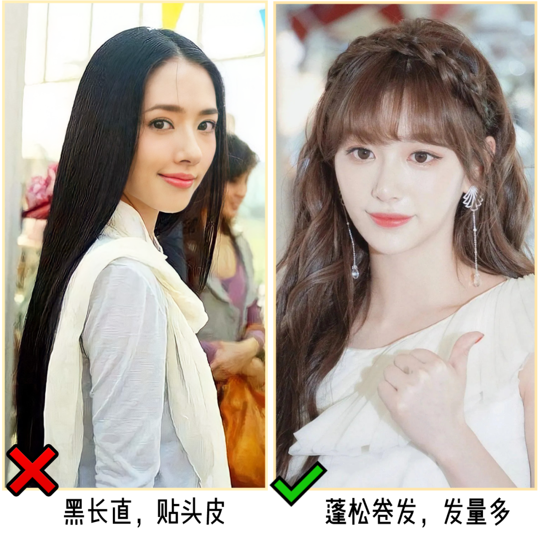 为什么不选择直男都喜欢的黑长直呢?还不是因为它太贴头皮了,会显得头发很秃,你看哪个大小姐是秃头的喔。