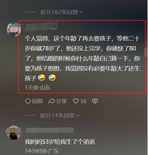 当然也有很多网友说,怎么58岁还生孩子?以后自己都老了,孩子还没有长大那怎么办?