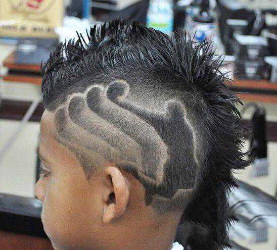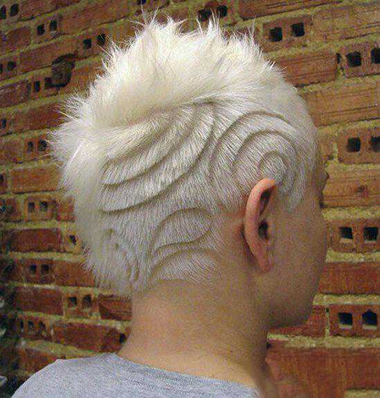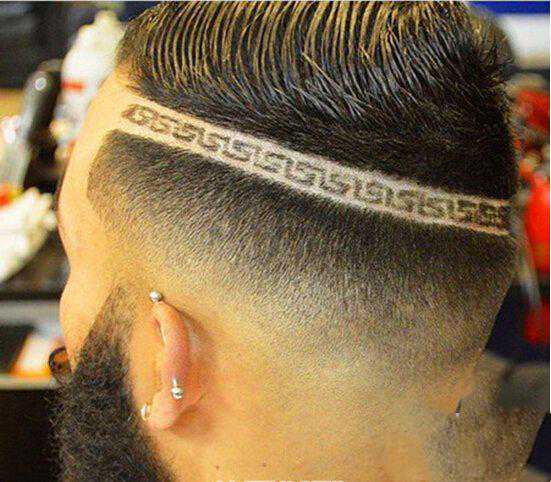 莫西干的发型搭配雕刻的花纹,简单但不失个性。