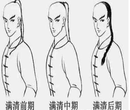 其实早期、中期的辫子头和影视剧流行的不一样,早期叫做“金钱鼠尾头”,就是留的发辫要比小拇指还细,要能穿过铜钱中的方孔才算合格,阴阳头是清末才慢慢出现的。
