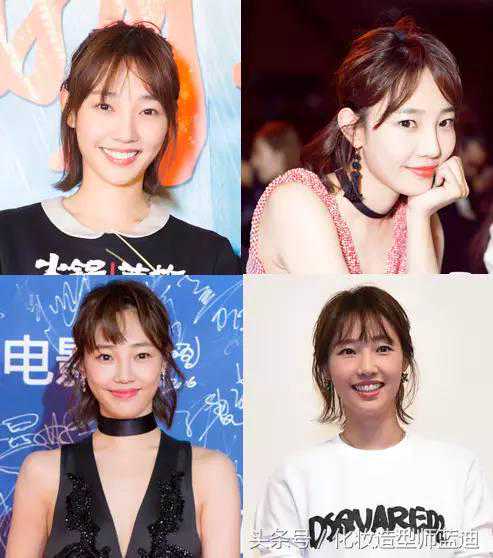 再看看之前头发长至锁骨位置的她,超百变——扎个冲天丸子头,头发长度没问题!束个减龄低马尾,妥妥不突兀!半收起后侧秀发伪装出短发模样,也特别有新意!