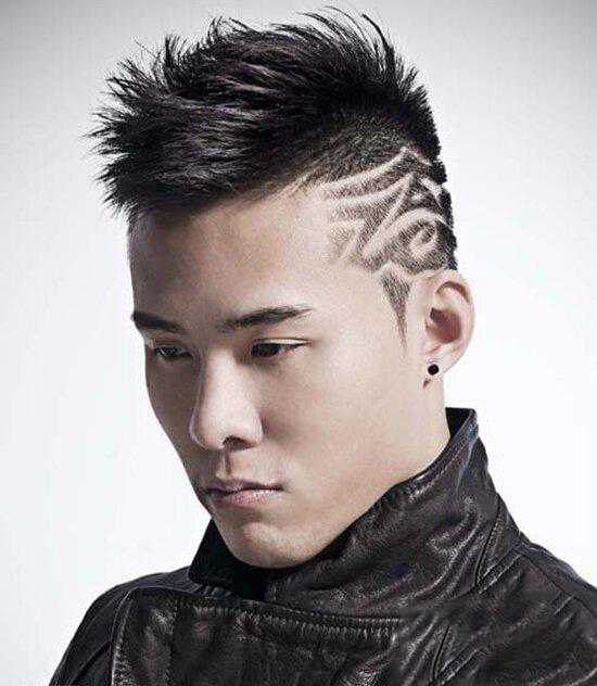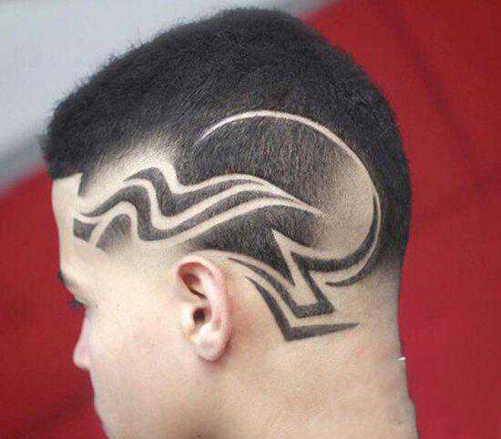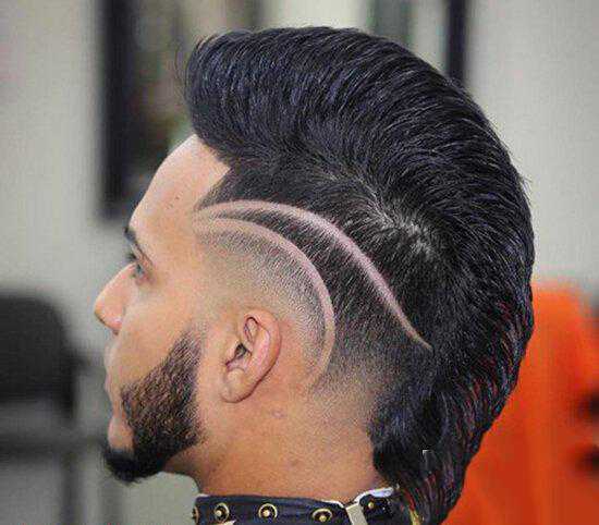莫西干的发型搭配雕刻的花纹,简单但不失个性。
