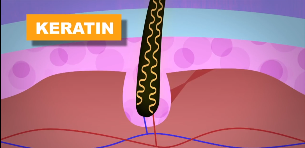 那我们就得先从长头发这件事情说起,在人的头皮上大约有10万到15万根头发,我们能够看到的这些暴露在头皮外的头发,都是由角蛋白组成的,而角蛋白是死细胞的残余蛋白质,当新的细胞在死细胞下生长时,角蛋白会被向上挤压,而这个过程发生在我们的发囊中。