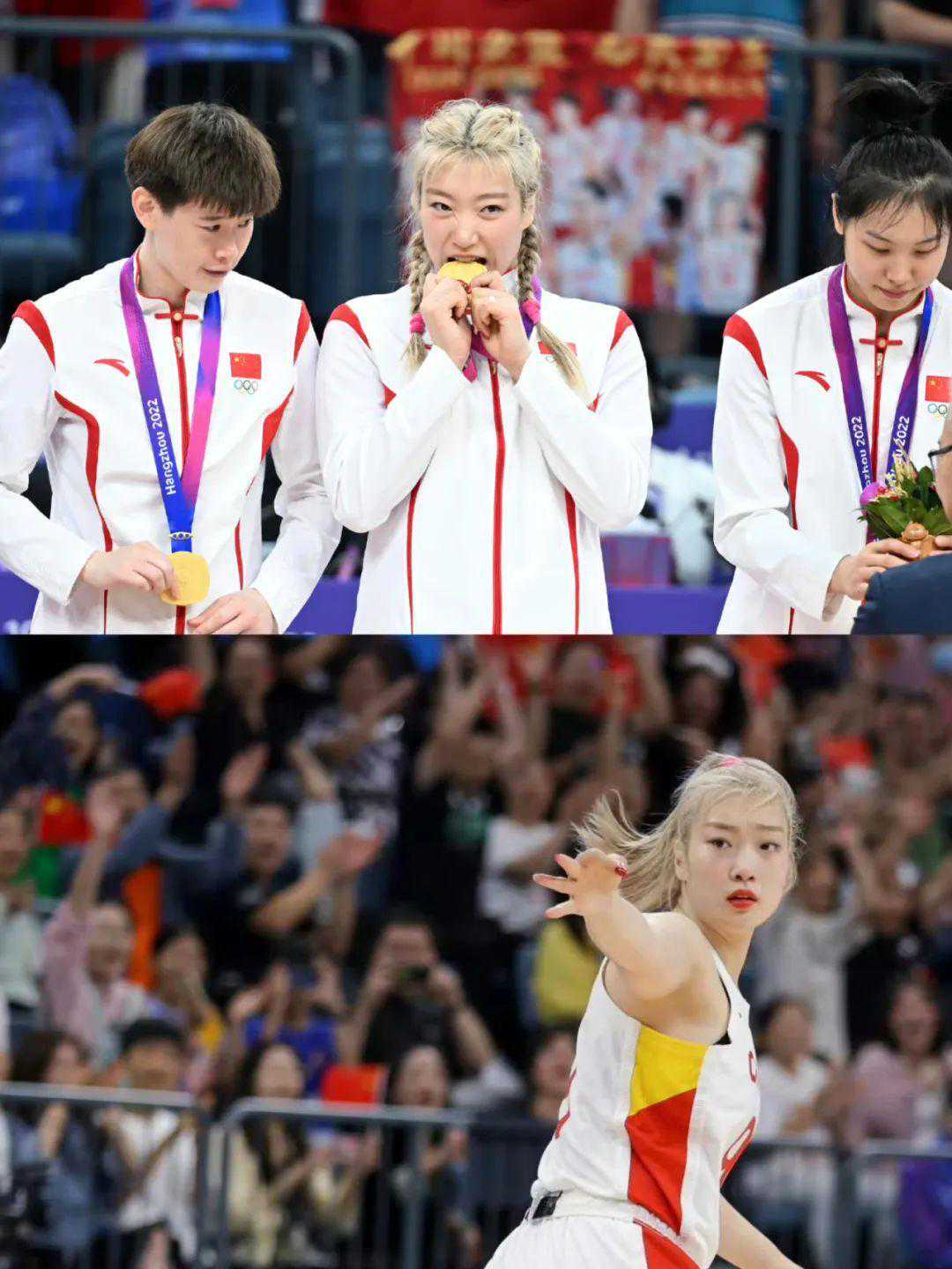 女篮李梦不仅打的一手好球,发型上也是不在怕的。金发与夺得的金牌一般闪耀!头包脸拳击辫或是高颅顶马尾配上亮粉色皮筋,能hold住高强度运动的发型,惊艳亮相亚运会赛场。