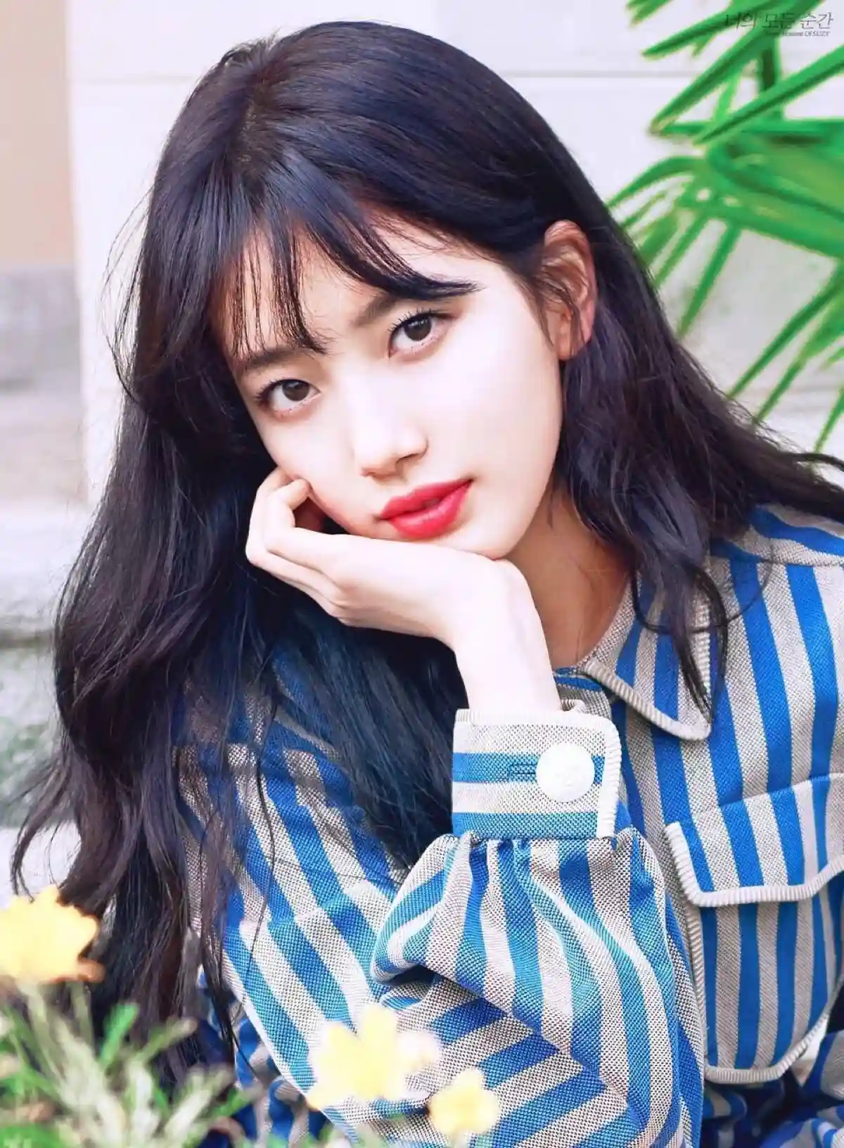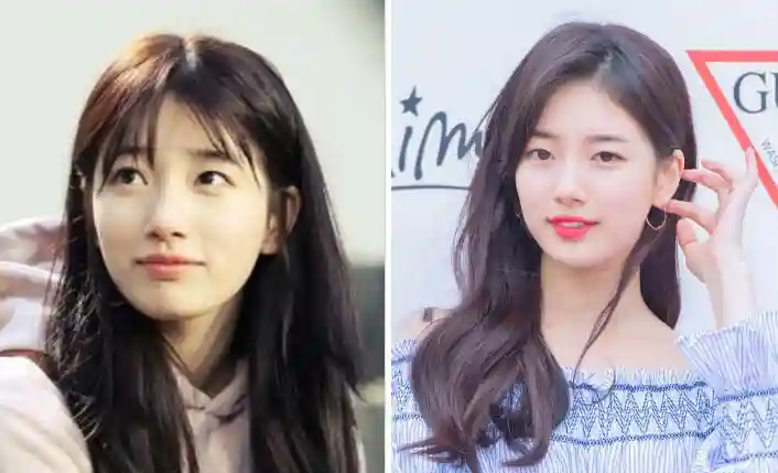 比如裴秀智,同样的长发,但刘海的有无与头发卷直度不同所呈现的效果也不一样,这种细节的变化就能影响局部视觉效果: