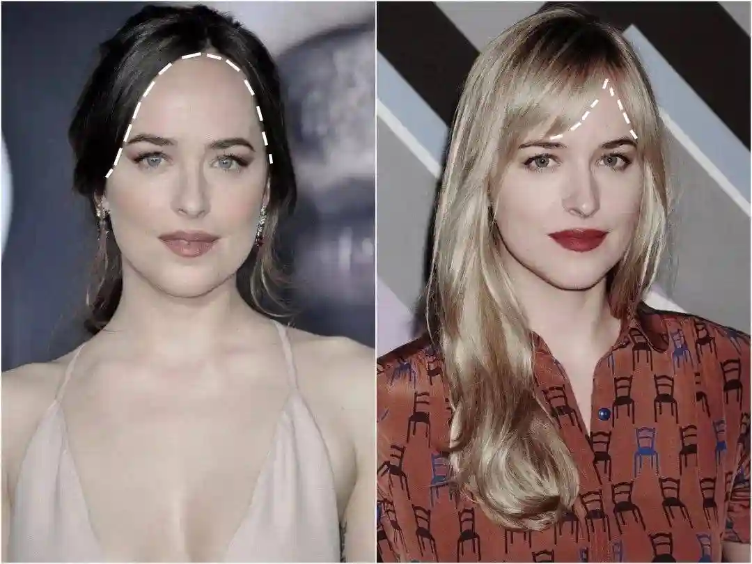 额头宽、窄或是发际线高的,可以选择八字刘海或是两边侧发来修饰: