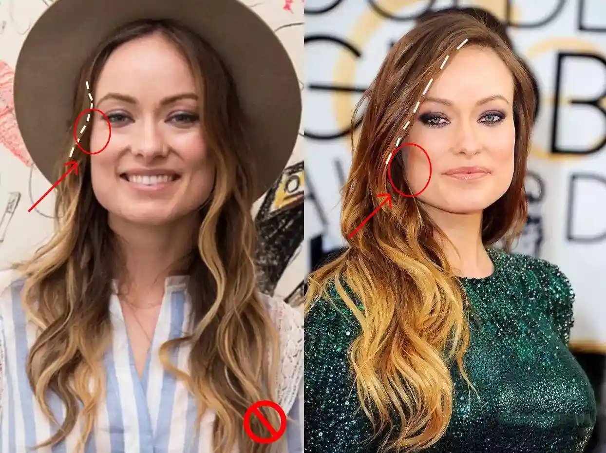 最后是关于下庭的问题。下庭常见且比较突出的问题就是嘴凸或下巴短,首先要避开直刘海发型,尤其是直刘海+长发,会降低视觉重心,更突出下庭特点。
