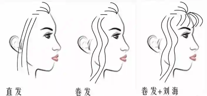 首先从脸型来看,针对这一局部问题,首先要避开会发大这一脸型特点的发型,比如说刚好在此部位的卷发: