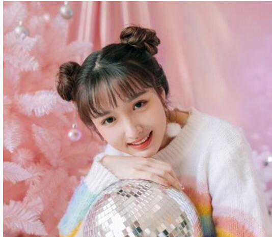 想要选择一些呆萌一点的学生妹子发型,就可以选择这一种齐刘海式的双丸子头发型的扎发,把两个花苞头扎得高高的,这一种稍带有一点孩童的天真气质,适合年龄稍小的女生。
