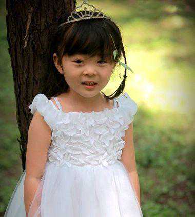 梳着齐刘海中长发的小女孩,乌黑柔顺的中长发在编辫子的时候,妈妈可以仅将小女孩双耳前面的头发编织成细细的麻花辫,其余发丝披散在身后,头顶用皇冠点缀,与白色连衣裙搭配在一起,小女孩就成了美萌小公主了哟。