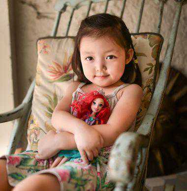发质比较好的小女孩,扎公主头发型上边的头发固定起来一半,剩余的头发则要更简洁一些,小女孩齐肩中短发扎公主头发型,齐刘海刚好梳在眼皮外边,齐肩的头发尾端很整齐。