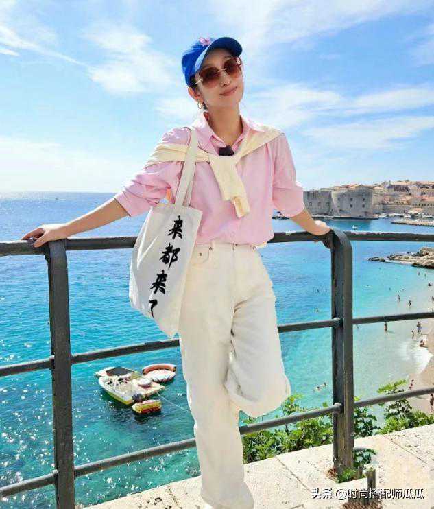 春天也少不了叠穿的造型,上衣的两层穿法比较简单,但也可以像图中穿法一样,用披肩的设计来优化领口部分的立体程度。造型穿法会更有品,组合清爽的马尾,也是很显高级的。