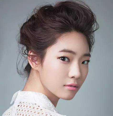 高耸的盘发露出白皙饱满的额头,蓬松的盘发效果甜美动人。