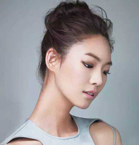 高耸的丸子头活力十足,露额造型更显迷人。